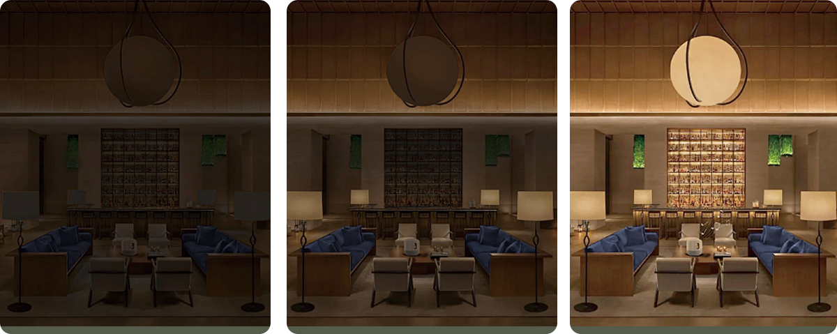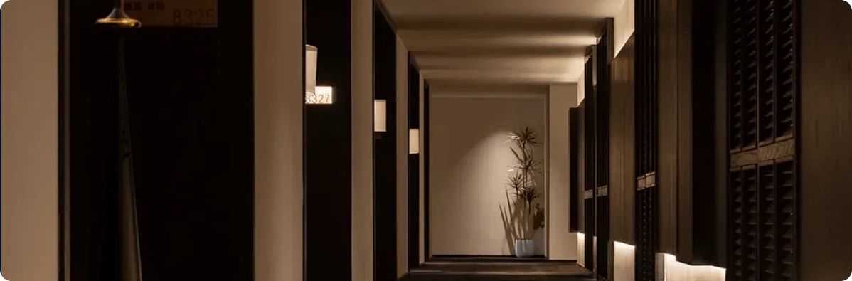 大堂、走廊照明动态调节,无人时自动切换至低功耗模式。宴会厅根据自然光强度自动补光,节能30%-40%。